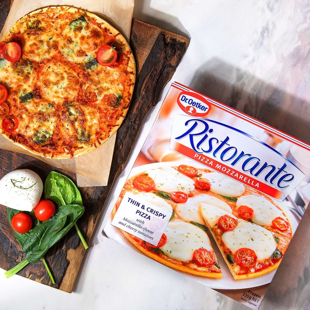 Pizza Ristorante mang phong cách Ý, với sự cân bằng hoàn hảo giữa lớp topping đậm đà và lớp đế mỏng, giòn, tạo nên sự kết hợp tuyệt vời và được nhiều người tiêu dùng trên thế giới yêu thích. Pizza Dr.Oetker Ristorante Mozzarella được phủ lên trên là hai loại phô mai nổi tiếng Mozzarella & Edam từ Châu Âu, cà chua bi, húng quế kết hợp với sốt pizza đặc biệt được làm từ Dr. Oetker tạo nên chiếc Pizza mỏng, giòn, thơm ngon và bắt mắt với nhiều màu sắc từ thành phần.