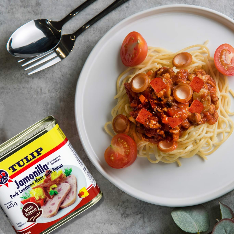 Thịt heo hộp Tulip Jamonilla Pork Luncheon Meat with Bacon nổi tiếng được nhập khẩu từ Đan Mạch. Đây là loại thịt hộp rất tuyệt để ăn kèm với cơm, mì, bánh pizza và sandwich.
